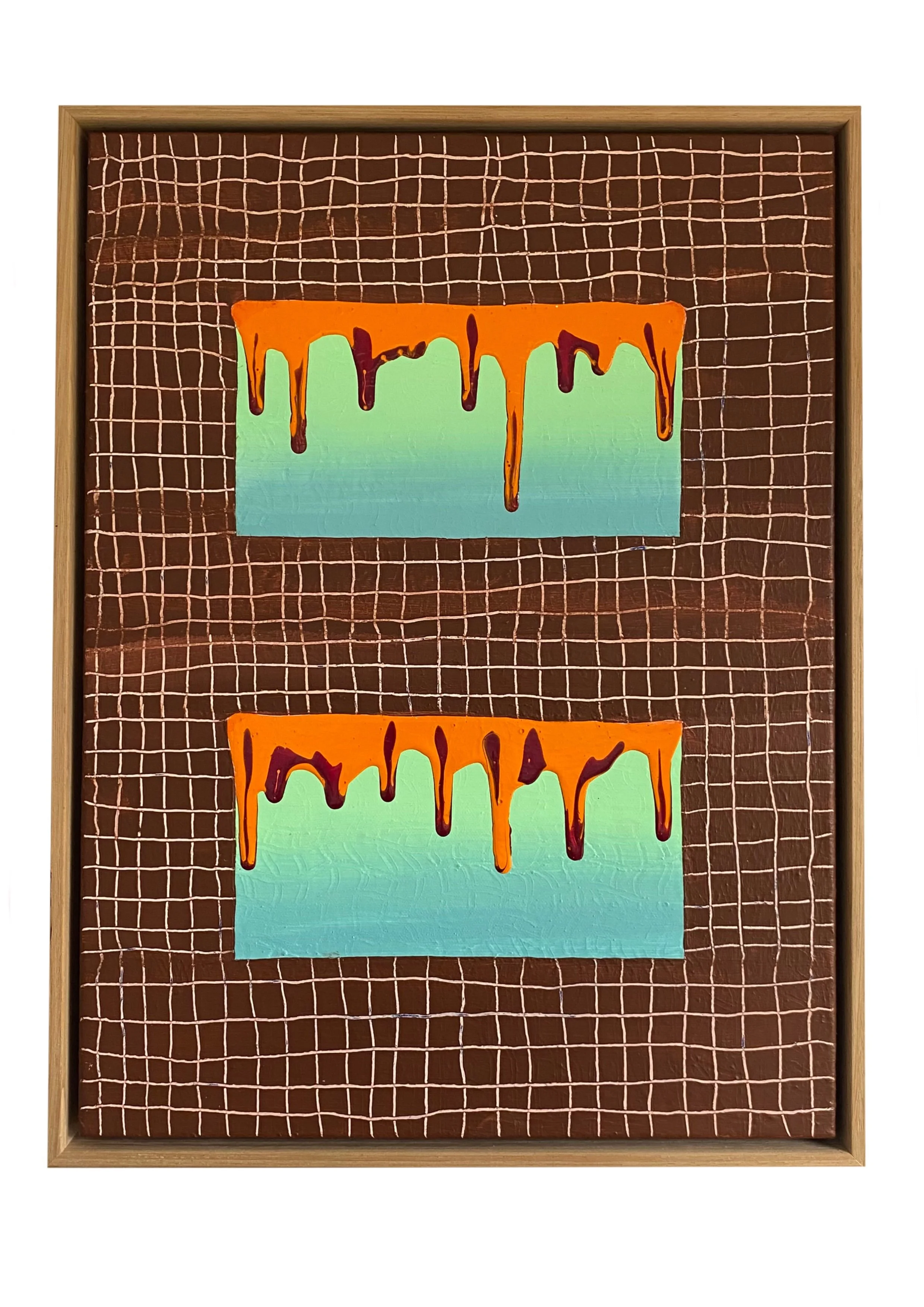 2022, acrylic on canvas, framed 32 x 37.5cm